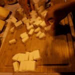 Éramos un pequeño grupo muy cercano, con confianza, que tras las explicaciones de Fran sobre sus quesos, pudimos degustar y comentar. A la vez los maridábamos con sidra dulce o espichada. Hay que decir que esta sidra y estos queso hacen muy buena pareja, y más cuando hay una pequeña historia por detrás. Fran, que es un amante de los quesos (como no) también lo es de la sidra, cuando puede va a tomar algún que otro culín con los amigos. Desde siempre le habían comentado lo buena que estaba la sidra Zapatero, la cual siempre buscaba pero no encontraba; hay que recordar, que este llagar prácticamente vende toda su producción por Asturias. Las casualidades de la vida, acabaron uniendo estos dos productos, permitiéndole no sólo poder probarla, sino enlazarla con sus propias elaboraciones.