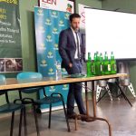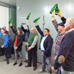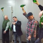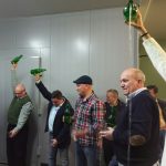 Para finalizar la charla participaron Sabino Pérez (maestro escandiador, sidrerías Tierra Astur), al cual resaltó la necesidad de educar al cliente y valorar la figura del escanciador. No son máquinas y merecen su respeto, hay que ser conscientes que si hacen bien su trabajo, nosotros no debemos echarlo para atrás, más bien impulsarlo. Junto a Samuel Trabanco comentaron anécdotas referente a este tema y como va evolucionando tanto la forma de beber como de servir la sidra. Concluyó con una clase práctica para todos los asistentes que se atrevieron a echar un culín, en este caso de agua, en vez de sidra.