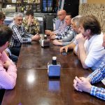 Tras ello empezó el acto generando un debate en torno al tema más de moda en el mundo sidrero: La subida de la sidra. A la vez que se debatía se probaban diferentes palos de sidra que la sidrería tenía a disposición. Sobre este temas surgieron varios puntos: «SUBIDA DE PRECIO, pero con exigencias, calidad en la sidra como en el servicio». «La importancia de la manzana, que sea de aquí, primer punto de partida para lograr un buen producto». «La sidra es la bebida más barata que hay, no puede tener un precio uniforme, se debería pagar más en función de su calidad, implicando su trato y servicio». «La necesidad de comunicarlo a la gente», que sepan todos los pasos hasta que te sirven la sidra. «Precio tope que la gente va a pagar por la sidra», aunque haya buen servicio y producto, se pagará hasta un determinado precio. «La subida de un chigre repercute en el de los alrededores», influye tanto si es para bien como para mal. Donde empezar en el primer o último eslabón, hubo diferentes opiniones: «Si el chigrero trata bien su sidra, debe repercutir en el llagar y de ahí debería afectar al productor de manzana». Más o menos, se llegó a la misma conclusión, buena calidad en la sidra, es la clave para su subida. Esta debe influir en todos las partes de la elaboración de sidra.