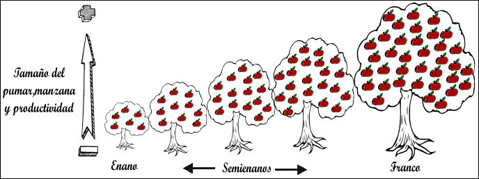 Mayor patrón, mayor tamaño de árbol, manzana y mayor productividad.