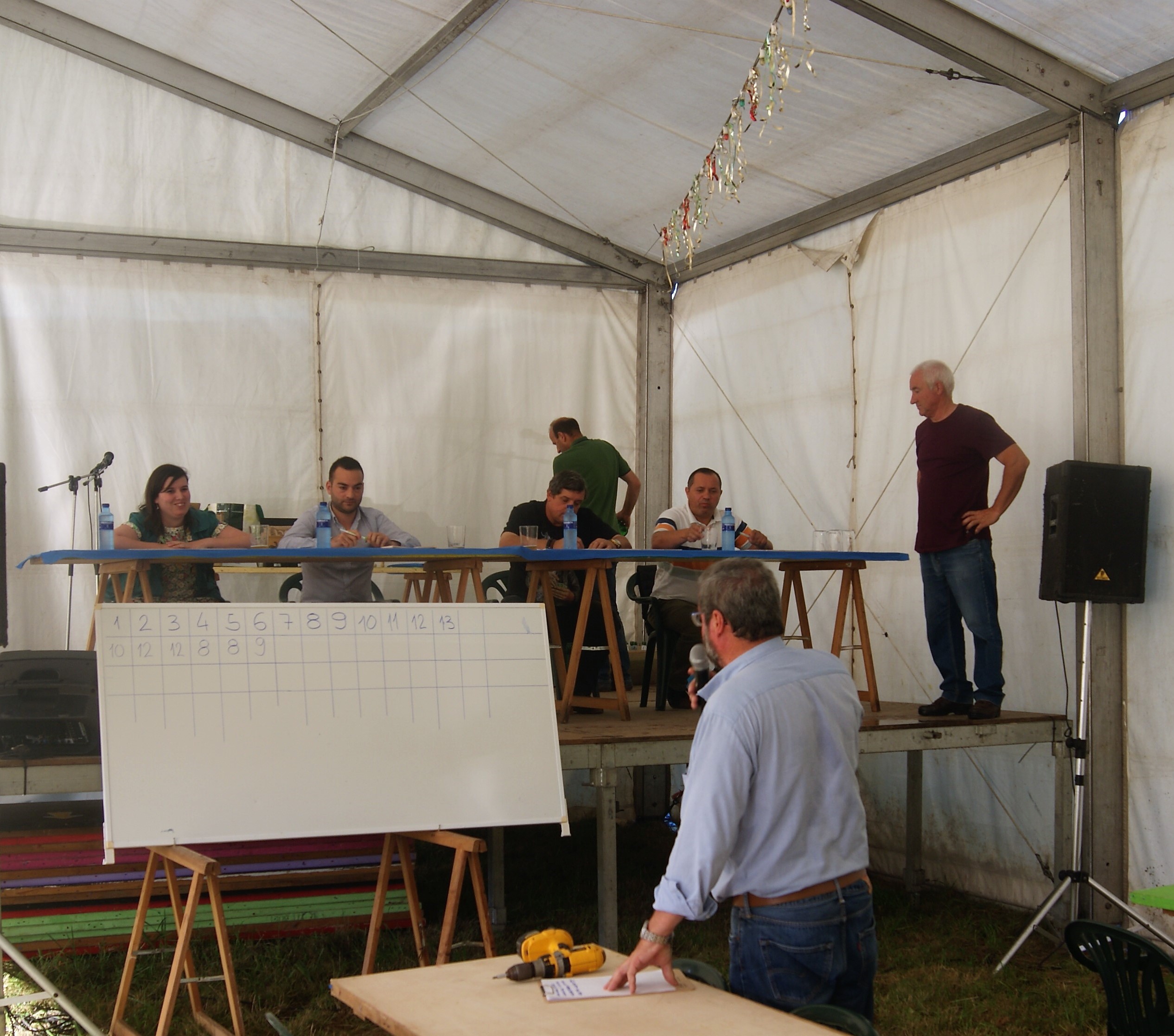 Jurado junto al escanciador y presentador