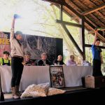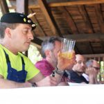 Nos quedamos con el concurso de la primera sidra l’añu casero en maera, enfocada a la gente que hace sidra en casa de toda la región. Este se realizó durante la mañana del domingo 16. Fueron 18 participantes, los que trajeron su primera sidra, que realizaron en toneles de madera. La prueba fue valorada por los siguientes miembros del jurado: Arsenio Angones (sidra El Neciu), Pedro Baldó (sidra El Duque), Manuel G. Busto, presidente del jurado (colaborador en La Sidra), Nacho Fuentes (sidra L’Allume), Donato Xuaquín Villoria (colaborador en La Sidra), se pueden apreciar en el mismo orden en la siguiente imagen.
