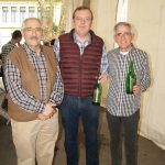 - Izda – Drcha: Juan José Vega Fangul, presidente de la Sociedad de Festejos San Pedro, Tino Cortina, llagarero de sidra Cortina y José Campo, gerente de Distribuciones Disilan.